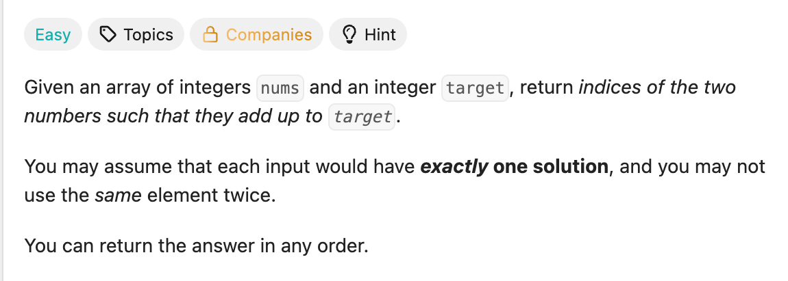 - 주어지는 변수: 숫자 리스트 nums, 정수 target