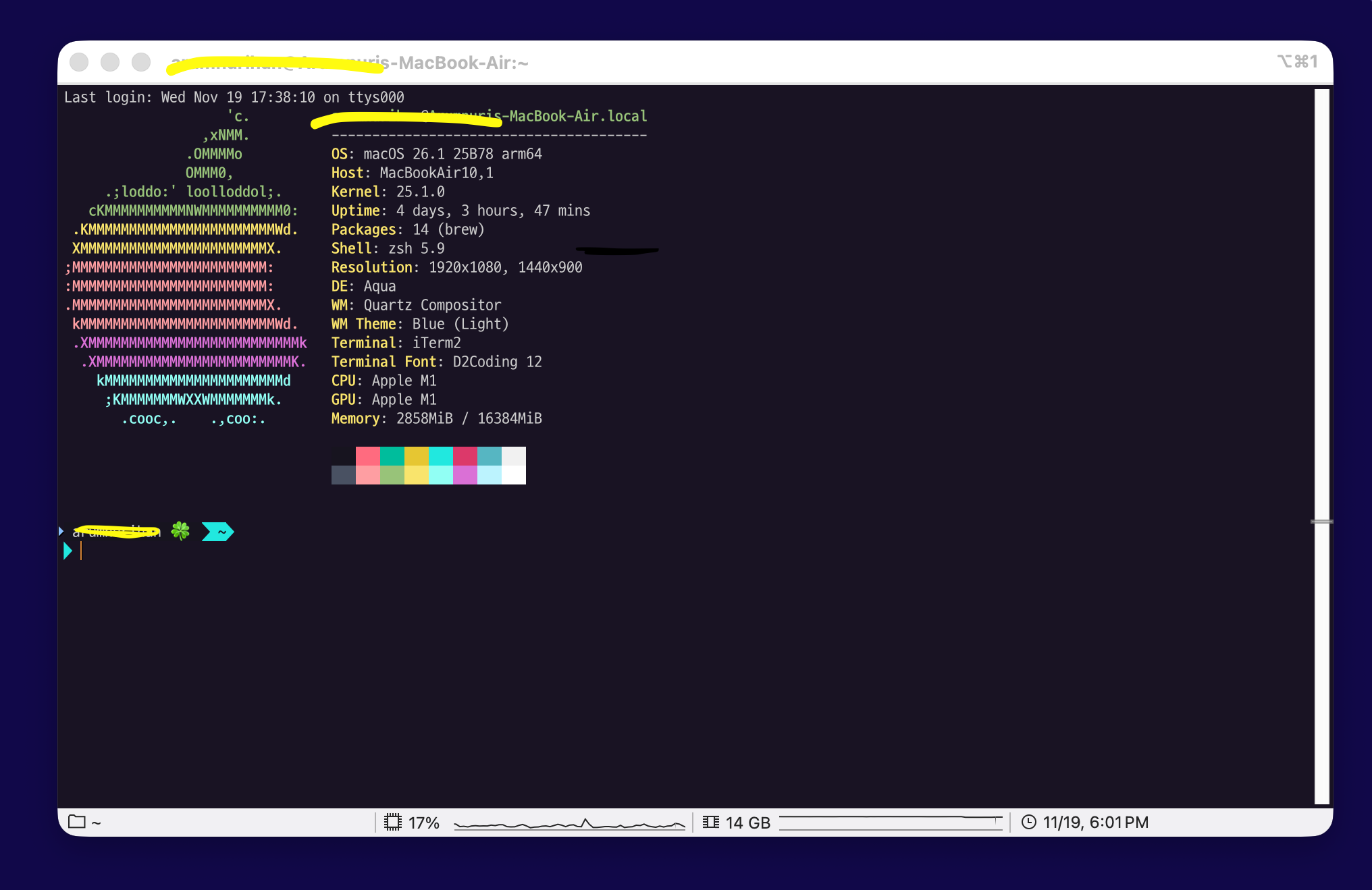 - zsh 가 실행될 때 Neofetch를 자동으로 실행