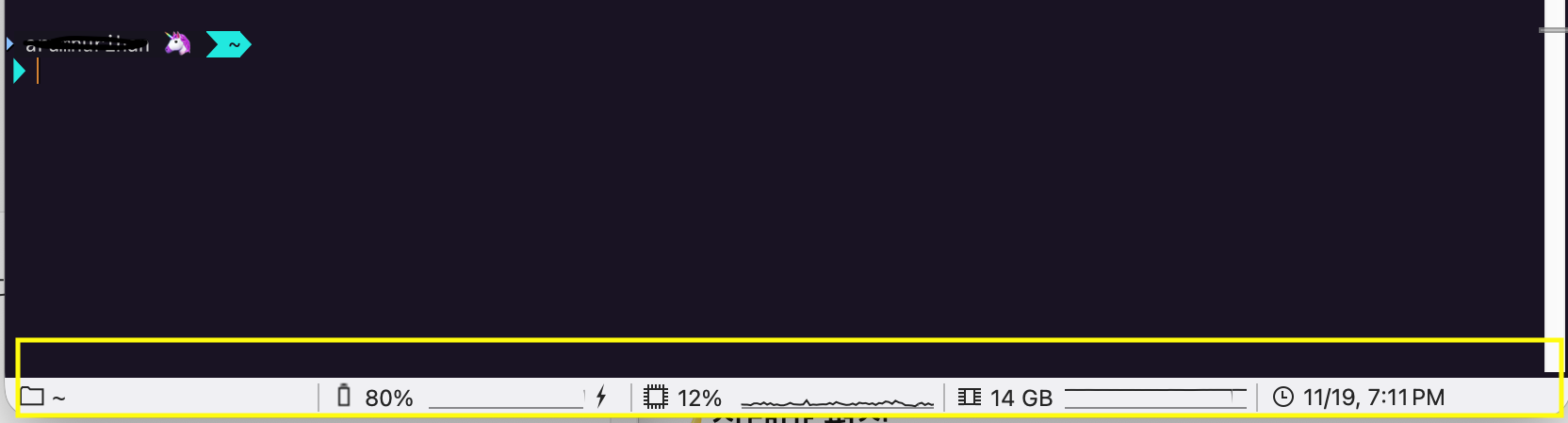 - 이렇게 아래 현재 폴더와, 베터리 용량, Ram, 시간 등등을 표기할 수 있는 상태바를 설정해보자