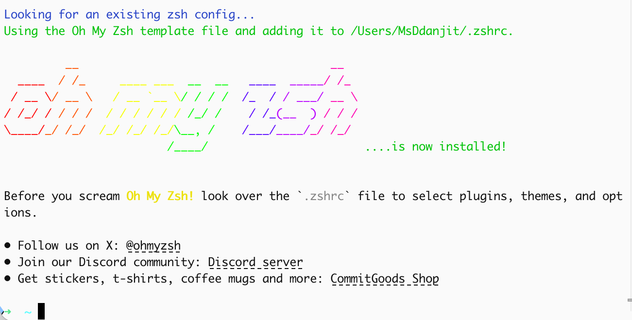 sh -c "$(curl -fsSL https://raw.githubusercontent.com/ohmyzsh/ohmyzsh/master/tools/install.sh)"